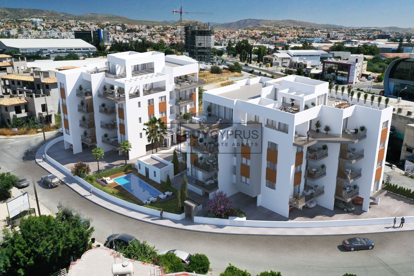 A stunning new private estate of apartment residences, offering a modern and truly luxurious environment, a unique residential address located in the exclusive Ayios Athanasiou “Jumbo”Area of Limassol, in the heart of Cyprus’ most cosmopolitan destination. A sumptuous retreat, surrounded by tranquil landscaped gardens, generous terracing, relaxation & entertainment areas and outdoor pool. Designed to feel part of the vibrant town centre but with the utmost privacy in mind. The project consists of two buildings made up of 1, 2 & 3 bedroom apartments, and 3 bedroom Deluxe Penthouses offering private rooftop pool and unobstructed sea views. All residences are built to the highest standards; incorporate the finest materials, and offer additional leisure and lifestyle amenities that make an exceptional place to live.