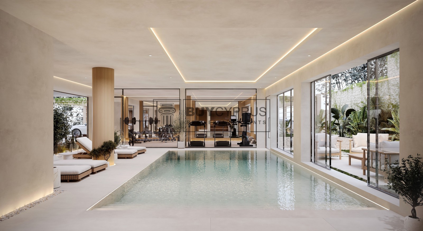 SPACIOUS 2 BEDROOM APARTMENT WITH PANORAMIC VIEWS, SAUNA, INDOOR POOL AND GYM IN GEROSKIPOU