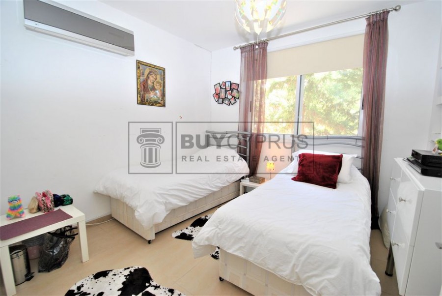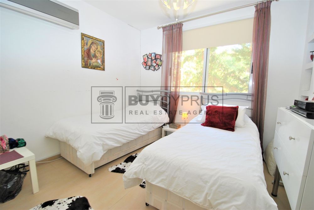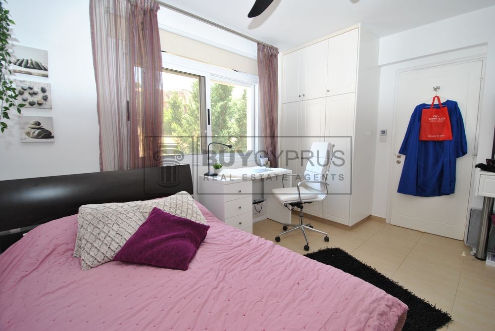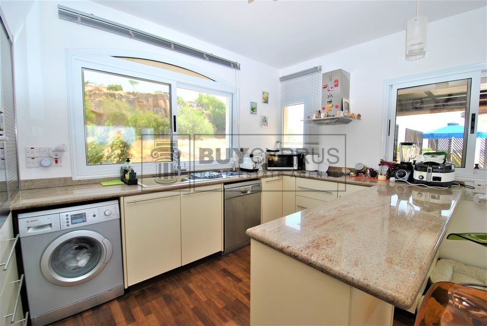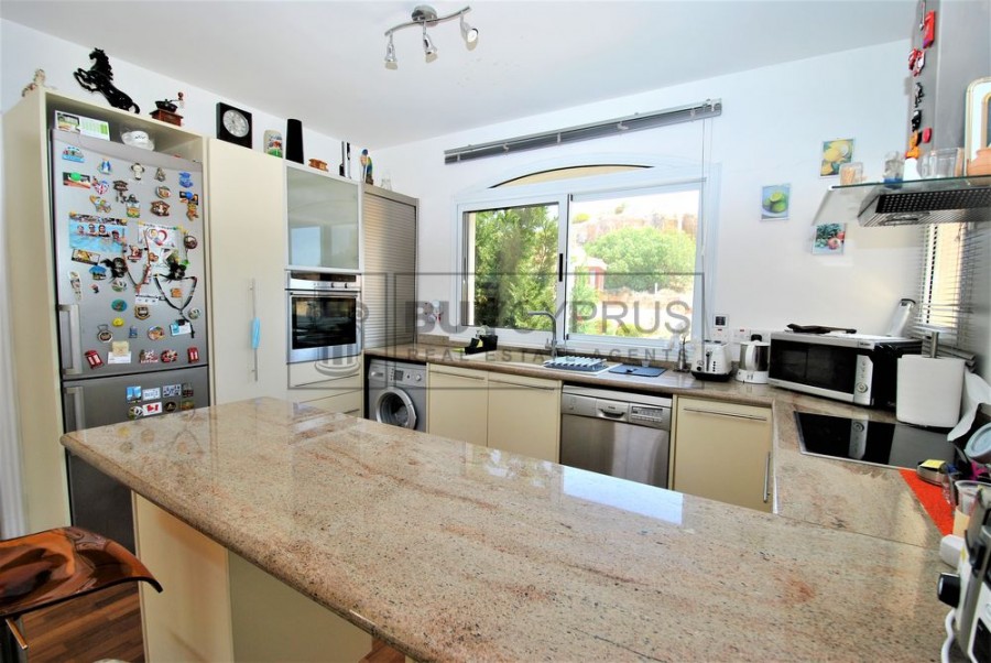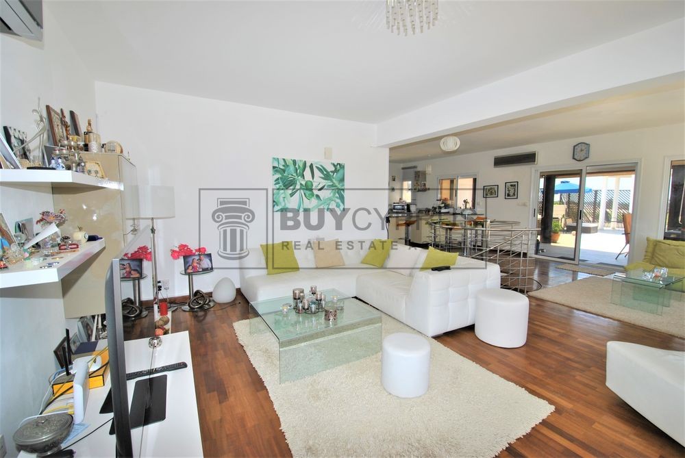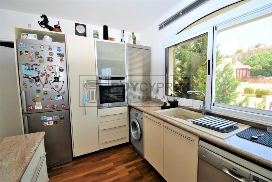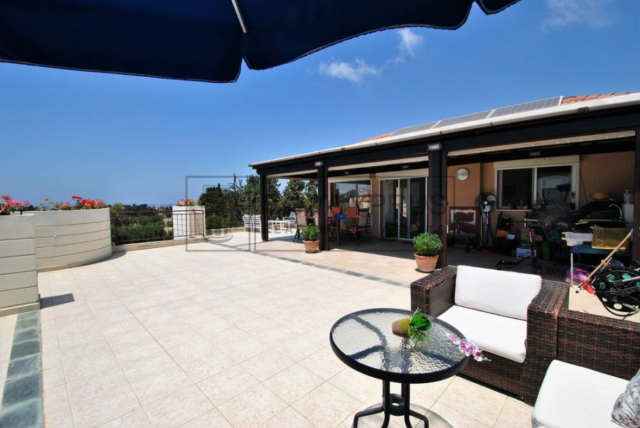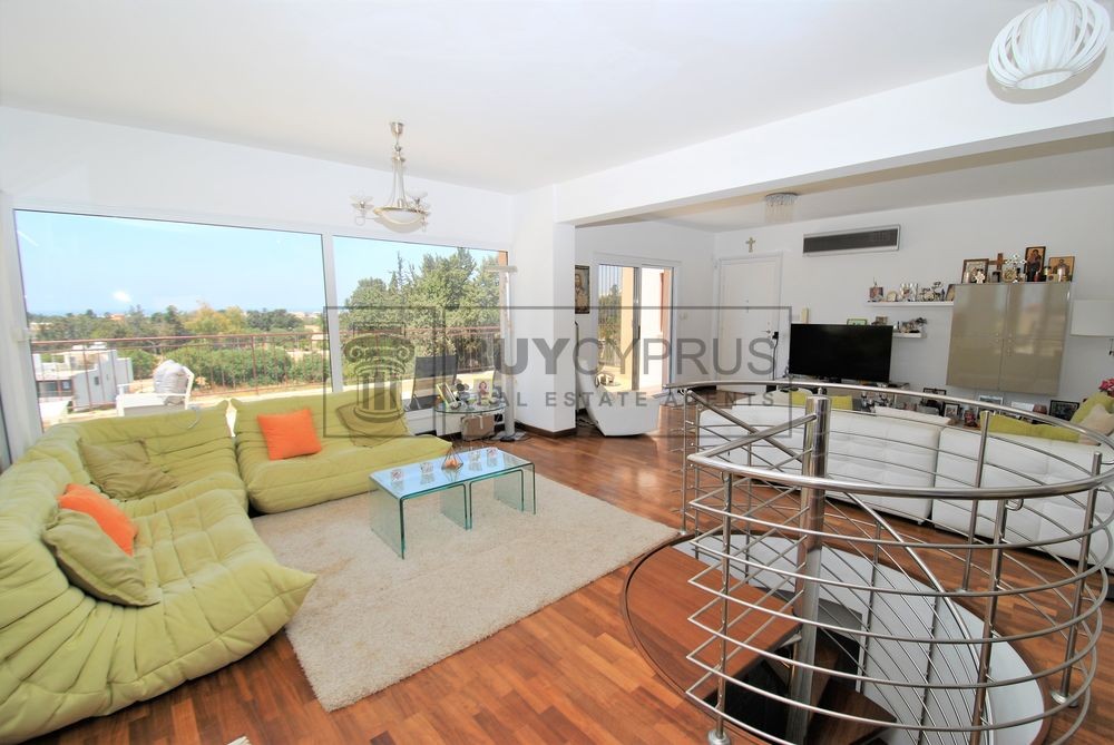 This spacious duplex apartment is over 2 levels; Upon entry to the the upper level you have a light and bright open plan spacious living, dining area and kitchen area separated by breakfast bar plus one of the three double bedrooms. From the living area you have access out on to your large terrace with a fabulous covered section where you can dine al-fresco or enjoy a cool drink whilst you sit and enjoy the splendid views across Pafos to the sea and the surrounding green areas.